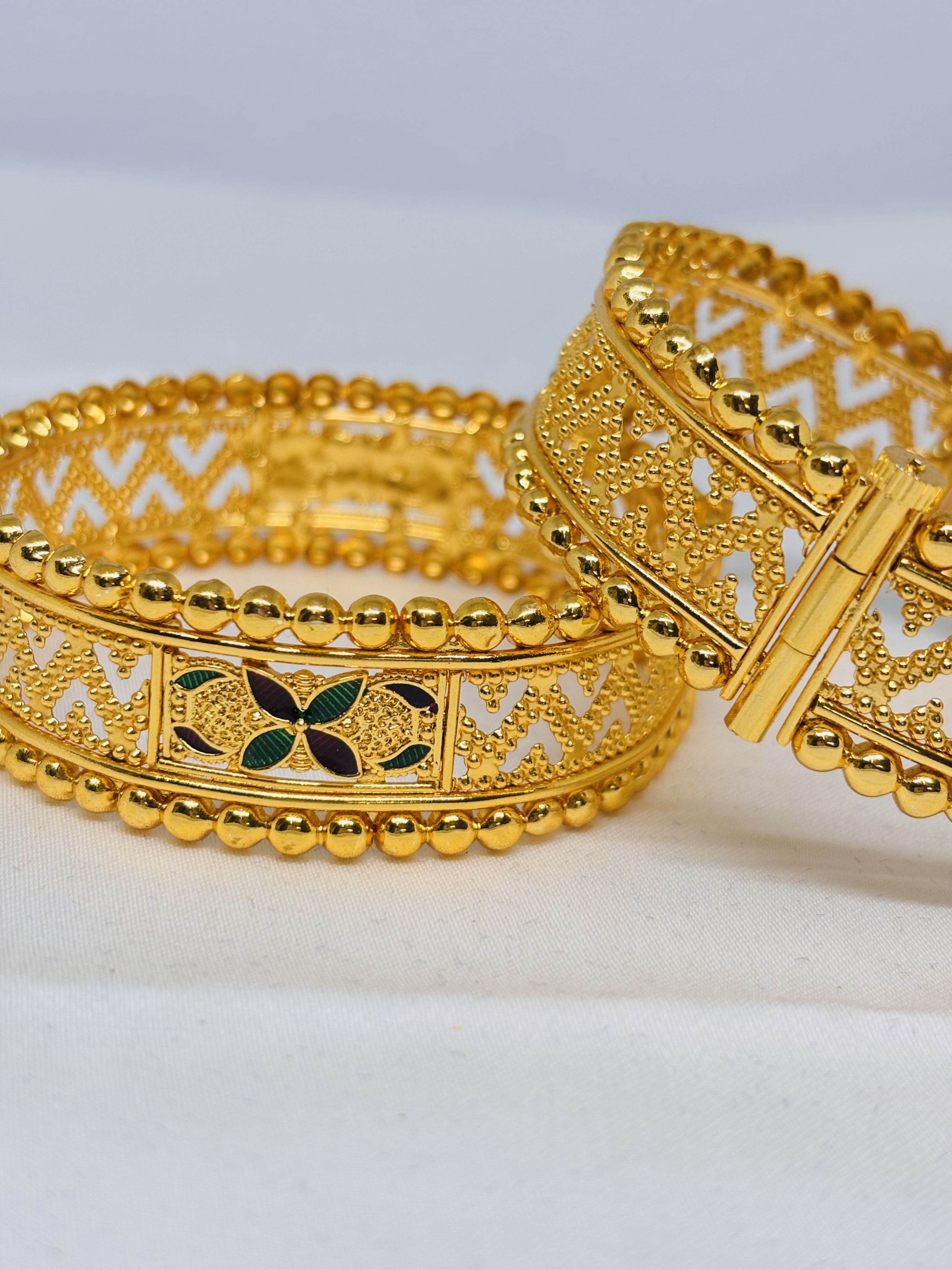 18K Gold Plated bangles with delicate lattice and beadwork – crafted with advanced plating that ensures long‑lasting beauty even after repeated use.