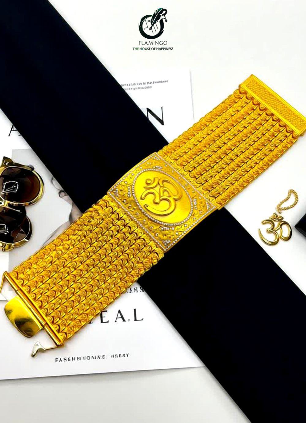 18K Handcrafted gold‑plated Om bracelet with textured weave – a fusion of spirituality and modern luxury for men.