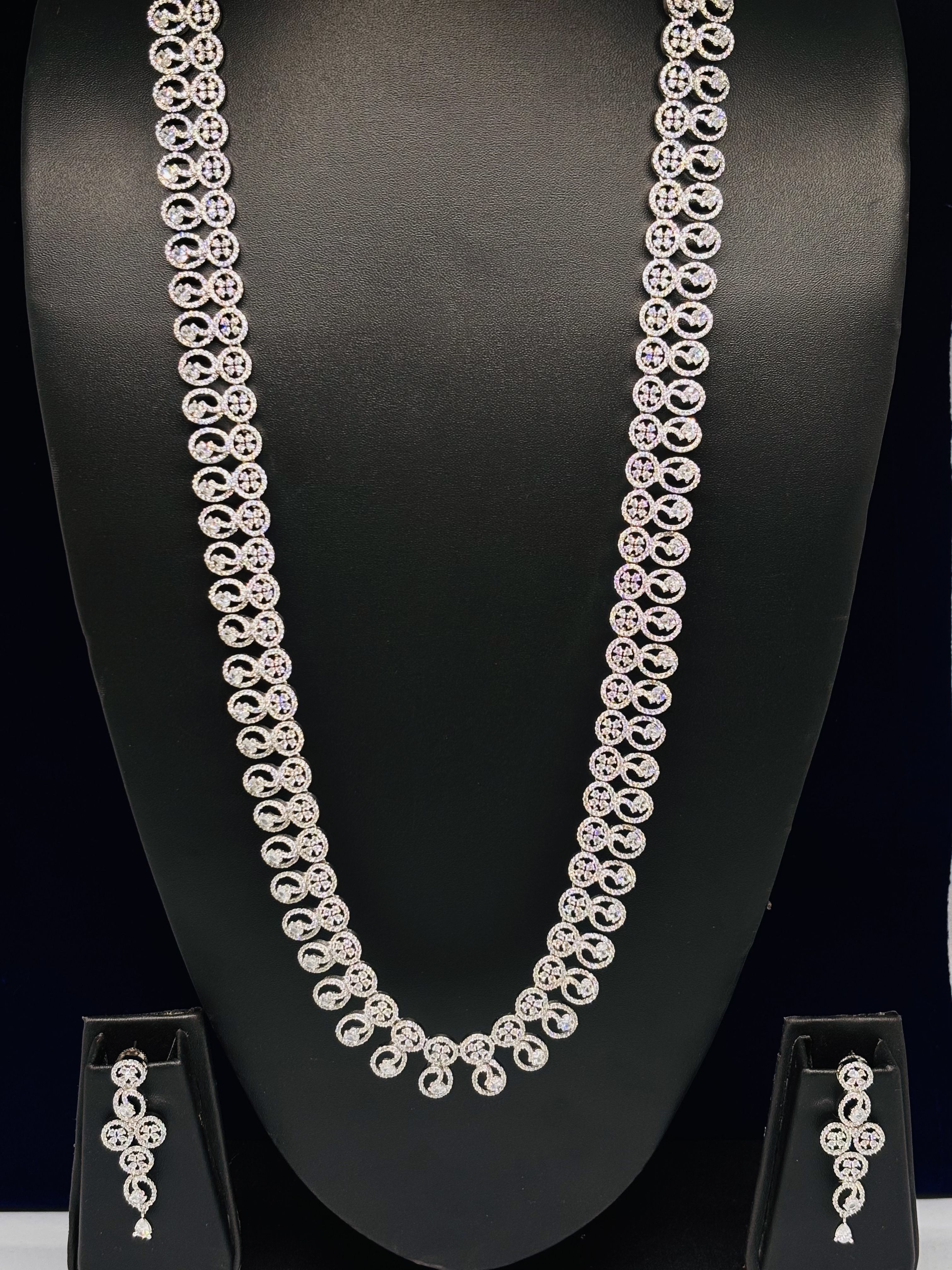 An American Diamond sleek silver-toned long necklace set with diamond-cut circles- a duo of necklace and earrings